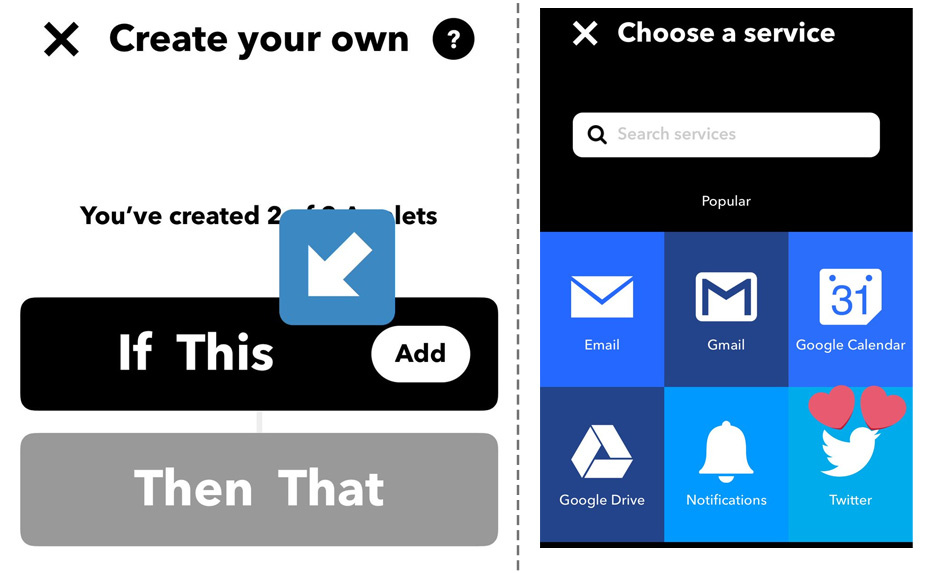 Next, tap “Then That” to tell the app what happens when your trigger is activated: