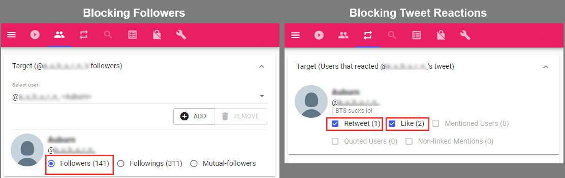 Your targeting options will be slightly different, depending on which mode you choose. But pay careful attention when blocking followers to ensure you're not accidently blocking follow-INGS.
