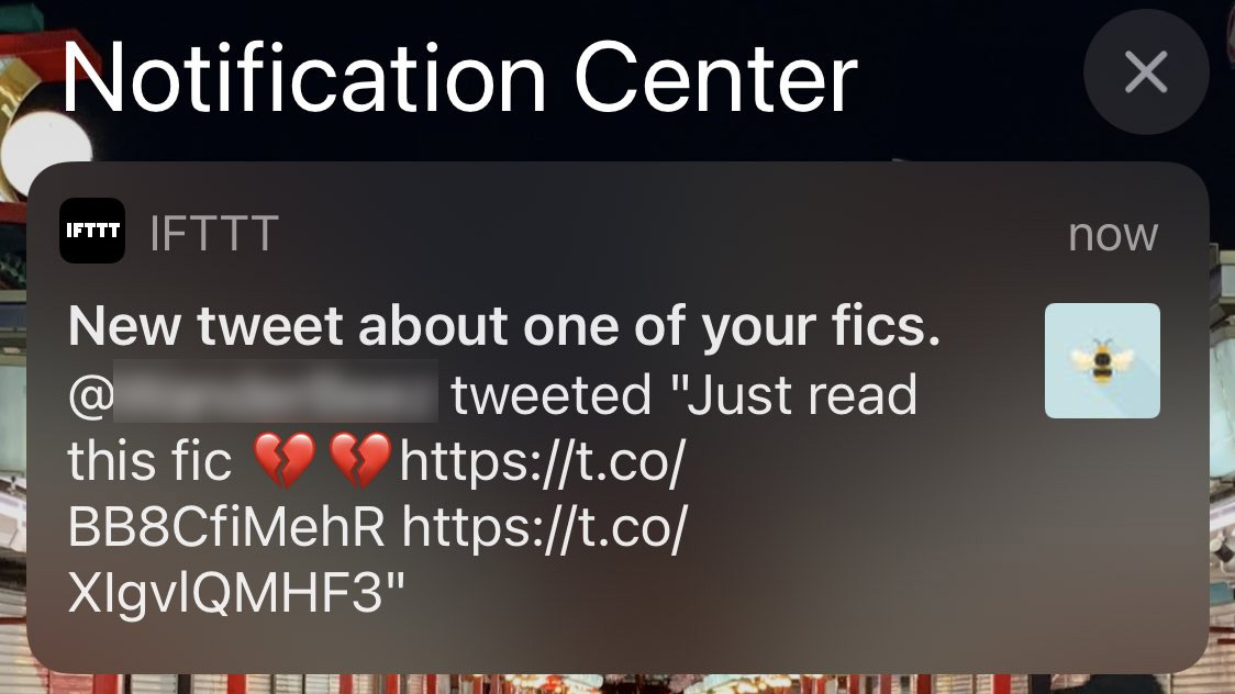 That’s it! Whenever someone tweets your fic URL going forward, you’ll get a phone notification. It’ll run approximately every 30 minutes.